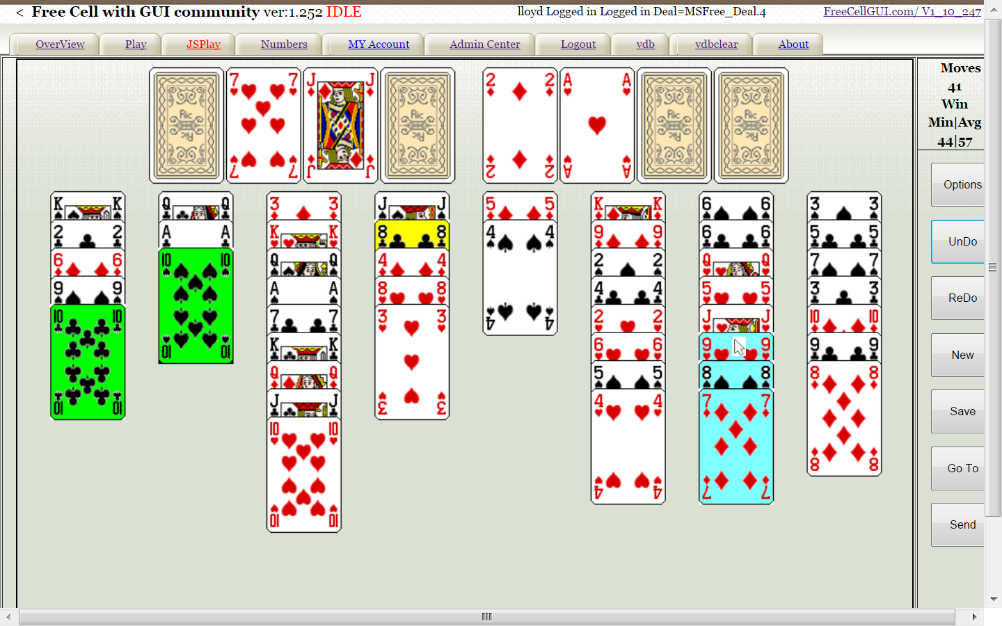 | Free Cell with GUI community | Guest Logged in | FreeCellGUI.com/ V1_10_257 |